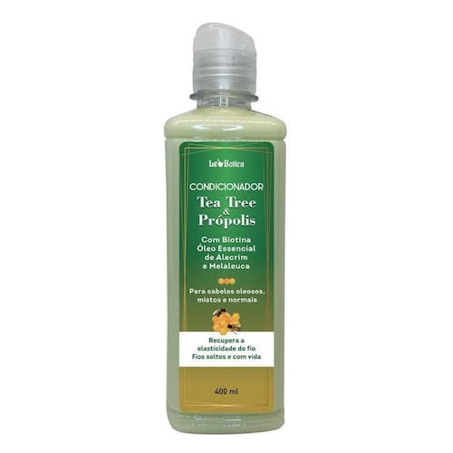 Condicionador tea tree e própolis elasticidade e vida aos fios . Hidrata os fios, revitalizando o cabelo e o couro cabeludo. . Melhora a força e a elasticidade dos fios. . Com biotina e óleo de alecrim e . Extrato de própolis: Previne o desenvolvimento de micro-organismos relacionados à caspa e restaura a flora natural do couro cabeludo. Óleo essencial de : Remove impurezas do couro cabeludo. Ajuda a tratar caspas psoríase. Óleo essencial de alecrim: Estimula a circulação no couro cabeludo e promove limpeza no bulbo capilar, fortalece os fios e previne a queda. Biotina: Estimula o crescimento dos fios. Validade: 2 anos. Devido a alta rotatividade dos produtos, o ano vigente normalmente é o ano de envase. Não testado em animais. Direto de fábrica. Marca: Não Informado