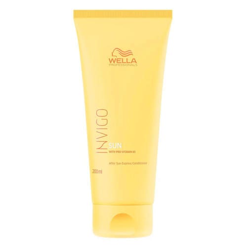O Condicionador Professionals Wella Invigo Sun foi desenvolvido especialmente para a reconstrução e proteção dos fios contra raios UV especialmente após a exposição ao sol na praia ou piscina, além de garantir a proteção da cor por mais tempo. Possui fórmula enriquecida com vitamina E, que protege o cabelo dos danos causados pela exposição ao sol, e pró vitamina B5, que hidrata intensamente os fios após a exposição aos raios UV. Confere ainda reparação intensa aos fios garantindo um aspecto saudável, macio e com brilho intenso.