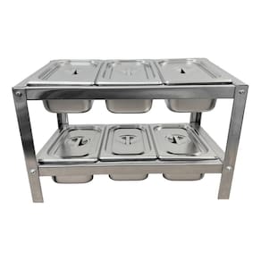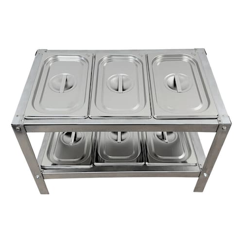Condimentadora de mesa em Aço Inox, com 6 cubas 1/4 x 100MM e tampas. Não refrigerado.Porta-fio