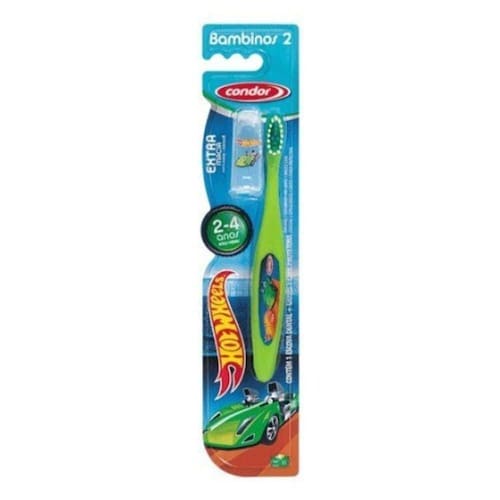 Condor Hot Wheels 2a4 Anos Escova + Protetor DESCRIÇÃO: Indicada para crianças de 2 a 4 anos. O desenho da escova facilita o aprendizado da correta maneira de escovar os dentesAÇÃO/ATIVOS: Cabeça pequena com cantos arredondados e laterais emborrachadas para proteger as gengivas da criança durante a escovação.MODO DE USAR: Utilizar para higienização bucal dos pequeninos.ESTE ANÚNCIO CONTÉM: 01 Condor Hot Wheels 2a4 Anos Escova + ProtetorCondor Hot Wheels 2a4 Anos Escova + Protetor