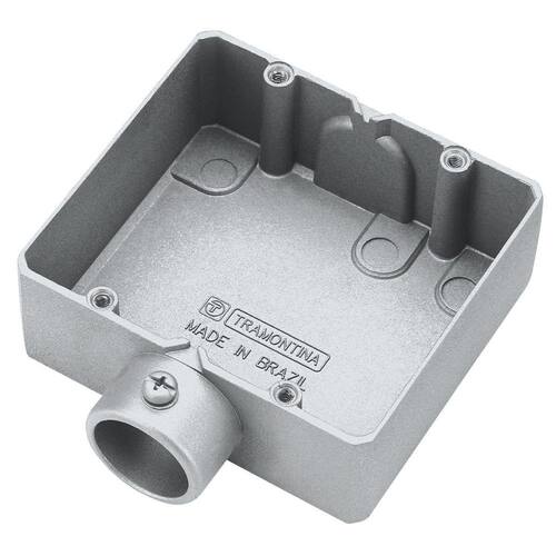 Produzido em alumínio, possui elevada resistência mecânica e a corrosão, sendo imprescindível para instalações eletricas aparentes - residenciais, comerciais e industriais - proporcionando uma solução, quando não se tem a intenção de quebrar a parede para embutir a fiação. A aplicação do Kit de Vedações (oferecido separadamente) possibilita, de forma simples e eficiente, obter o índice de proteção IP 54 - ideal para instalações externas. Orientações Pintura eletrostática a pó na cor cinza Munsell N 6.5 Características Gerais EAN13 7891435008234 DUN14 17891435008231 NCM 7609.00.00 Peso Líquido 0,1580 kg. Peso Bruto 0,1610 kg. Metragem 0,000465 m³. Dimensões Embalagem (Compr. X Larg. X Alt.) 113x 103x 40 mm. Dimensões Produto (Compr. X Larg. X Alt.) 113x 104x 40 mm. Cor 1 C0C0C0 Hexa Observações A instalação e segurança: É importante que o produto seja instalado por profissional habilitado. Antes de instalar, desligue a energia elétrica.
