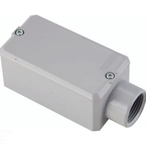 Produzido em alumínio, possui elevada resistência mecânica e a corrosão, sendo imprescindível para instalações eletricas aparentes - residenciais, comerciais e industriais - proporcionando uma solução, quando não se tem a intenção de quebrar a parede para embutir a fiação. A aplicação do Kit de Vedações (oferecido separadamente) possibilita, de forma simples e eficiente, obter o índice de proteção IP 54 - ideal para instalações externas. Orientações Pintura eletrostática a pó na cor cinza Munsell N 6.5 Características Gerais EAN13 7891435025453 DUN14 17891435025450 NCM 7609.00.00 Peso Líquido 0,1200 kg. Peso Bruto 0,1230 kg. Metragem 0,000234 m³. Dimensões Embalagem (Compr. X Larg. X Alt.) 115x 51x 40 mm. Dimensões Produto (Compr. X Larg. X Alt.) 109x 51x 46 mm. Cor 1 C0C0C0 Hexa Observações A instalação e segurança: É importante que o produto seja instalado por profissional habilitado. Antes de instalar, desligue a energia elétrica.