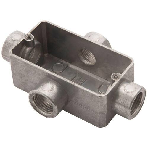 Condulete Fixo 3/4" Tipo "x" - Sem Tampa / Rosca Bsp / Sem Pintura Condulete fixo 3/4 tipo X - sem tampa / rosca BSP / sem pintura Produzido em alumínio, possui elevada resistência mecânica e a corrosão, sendo imprescindível para instalações eletricas aparentes - residenciais, comerciais e industriais - proporcionando uma solução, quando não se tem a intenção de quebrar a parede para embutir a fiação. A aplicação do Kit de Vedações (oferecido separadamente) possibilita, de forma simples e eficiente, obter o índice de proteção IP 54 - ideal para instalações externas.