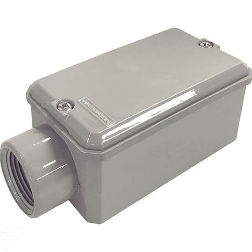 Os conduletes com rosca NPT da Tramontina são ideais para instalações elétricas aparentes - residenciais, comerciais e industriais - em ambientes, internos ou externos, onde possa existir líquidos, poeiras, gases e vapores não inflamáveis. Acompanha junta de vedação IP54 e possui rosca no formato cônico, garantindo perfeita vedação. Produzido em alumínio, proporciona elevada resistência mecânica e a corrosão. Orientações Pintura eletrostática a pó padrão poliéster. Cor cinza Munsell N 6.5. Características Gerais EAN13 7891435007060 DUN14 17891435007067 NCM 7609.00.00 Peso Líquido 0,1500 kg. Peso Bruto 0,1540 kg. Metragem 0,000235 m³. Dimensões Embalagem (Compr. X Larg. X Alt.) 115x 51x 40 mm. Dimensões Produto (Compr. X Larg. X Alt.) 109x 51x 46 mm. Cor 1 C0C0C0 Hexa Observações A instalação e segurança: É importante que o produto seja instalado por profissional habilitado. Antes de instalar, desligue a energia elétrica.
