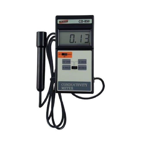 CONDUTIVÍMETRO (MEDIDOR DE EC) MOD. CD-850 DIGITAL PORTÁTIL, FAIXA DE 0 A 200MS COM CERTIFICADO DE CALIBRAÇÃO DESCRIÇÃO: Condutivímetro (medidor de ec) mod. cd-850 digital portátil, faixa de 0 a 200ms com certificado de calibração ESPECIFICAÇÕES TÉCNICAS: Escala: (0 à 200)µS/cm (0,2 à 2)mS/cm (2 à 20)mS/cm (20 à 200)mS/cm Resolução: 0,1µS/cm 0,001mS/cm 0,01mS/cm 0,1mS/cm (Obs:. uS= micro Siemens / mS = mili Siemens) CARACTERÍSTICAS: Display de cristal líquido (LCD) de 3 1/2 dígitos Precisão: ± 1% + 2 dígitos Compensação de temperatura: automático (0 a 50ºC) Sensor separado do aparelho Função Hold: Congela a leitura no display Temperatura de operação: 0 a 50 ºC Umidade de operação: Máx. 80% RH Alimentação: 1 bateria de 9V Dimensões / Peso: 168 x 80 x 35 mm / 340g ACESSÓRIOS FORNECIDOS: Estojo Eletrodo de condutividade Manual de instruções Certificado de calibração