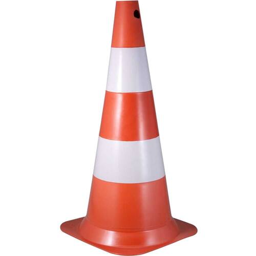 Cone de polietileno com 75 cm, laranja e branco, muito resistente. Indicado para sinalização de trânsito, estacionamentos, obras, práticas esportivas, entre outros.