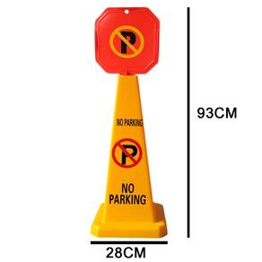Este cone de trânsito amarelo vibrante apresenta um aviso de "Proibido Estacionar" e um símbolo claro de proibido estacionar para máxima visibilidade.