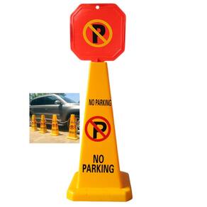 Este cone de trânsito amarelo vibrante apresenta um aviso de "Proibido Estacionar" e um símbolo claro de proibido estacionar para máxima visibilidade.