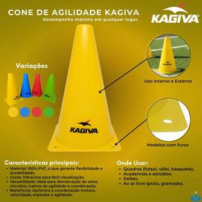 O cone de sinalização Kagiva é fabricado em PVC flexível e resistente, indicado para organização e demarcação de espaços em diferentes ambientes. Possui cores vivas que facilitam a visualização e pode ser utilizado em atividades recreativas, educacionais ou esportivas.