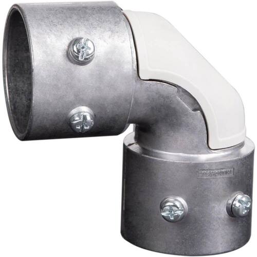 Conector curvo em alumínio sem rosca, acabamento sem pintura e janela de inspeção em termoplástico. Possui elevada resistência mecânica e a corrosão. Solução para instalações aparentes, onde a intenção é não quebrar a parede para embutir a instalação elétrica. De execução simples para fábricas, comércio e residências. Acompanha parafuso.