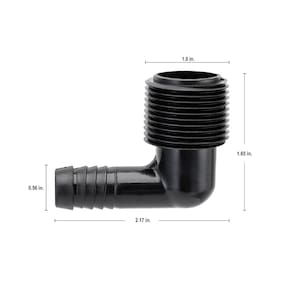 Orbit 94360 - Codo para tubería riser-flex y swing de 3/4" MPT x 1/2" barbado. - Para realizar conexiones internas barbadas a tubería riser-flex y swing. - Accesorios duraderos de ABS con barbas espirales que crean un sello hermético. - Compatible con la tubería Funny Pipe de Toro y con tuberías Swing Pipe de Orbit, Rain Bird y Hunter. - Para la transición a Blu-Lock usar adaptador Blu-Lock 1/2 pulg. x barbado espiral. - Para uso en riego exterior con presión no constante, usar solo con agua fría.