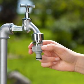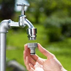 Este conector de torneira Gardena permite fixar uma mangueira de jardim a uma torneira. Manuseio fácil e confortável graças ao formato especial do conector de torneira.