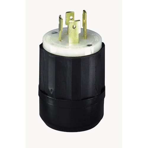 Leviton 20 A, 250 volts trifásico, NEMA L15-20P, 3P, 4W, plugue de bloqueio, grau industrial, aterramento, 2421, preto e branco