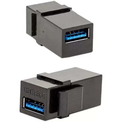 O keystone usb x usb, funciona como um extensor e é ideal para o uso em painel de madeira, espelhos de tomada, móveis para embutir entre outros.