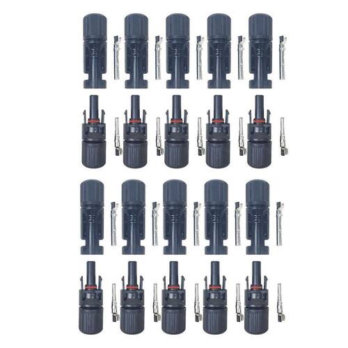 Conector MC4 Painel Energia Solar 30A IP67 Kit 10 Pares 10 pares de conectores MC4 para cabo solar com anel de vedação duplo. Especificações: - Material do encapsulamento: PPO- Faixa de temperatura : -40 C +125 C- Material do contato: Cobre, estanhado.- Classe antichama: UL94-VO ou UL94-5VA- Corrente máxima: 30A- Cabo indicado: 2.5mm2,4mm2,6mm2 awg14,awg12,awg10 - Dimensão do pino: 4.0 mm dia.- Resistência do contato: =0.2mmo- Grau a prova dágua:IP67- Classe de segurança: 2 Pacote inclui: 10x conector MC4 macho para cabo de painel solar10x conector MC4 fêmea para cabo de painel solar Marca: World Sun Ligth