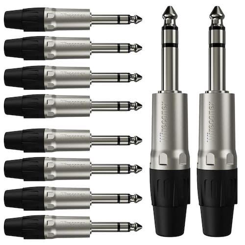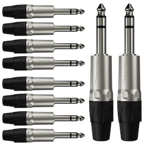 10 unidades dos Conectores P10 Plug Linha 6,3mm (1/4") TRS Metal Para utilização profissional