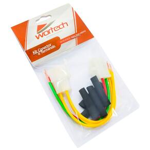 -Dados Técnicos: -Instalação: É necessário soldar os cabos -Conector: Em Nylon de alta qualidade com trava -Terminais: Terminais metálicos estanhados (cor prata) -Chicote: Cabos de alta temperatura -Acabamento: termo retrátil para um melhor acabamento das emendas