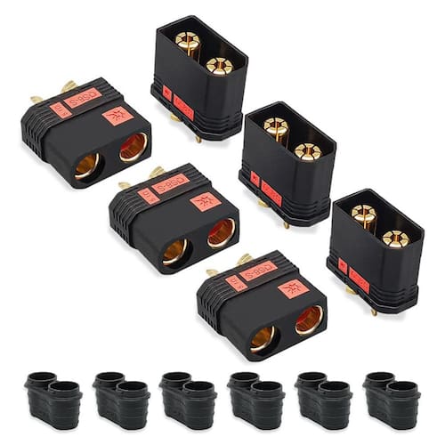 Plugue de carregamento de energia móvel FPV Plant/RC Car QS8-S Nome do conector antifaísca: QS8 macho e fêmea Modelo: QS8-S Cor: preto Material plástico: nylon mais fibra Corrente instantânea: 180A Corrente nominal: 110A Resistência de contato: 0,51 mQ Tensão nominal: DC 500V Grau retardador de chama: UL94 V0 Resistência à temperatura: 200 ? Área de aplicação: bateria/controlador/carregador Material metálico: medidor de fio recomendado banhado a ouro: 6AWG-10AWG Material de isolamento: PA Temperatura de operação: - 20C a 120C Pacote incluído: 3x conector SoloGood QS8-S macho + 3x conector SoloGood QS8-S fêmea - Conector carregador de bateria SoloGood QS8-S macho e fêmea - Materiais do conector : plugue de latão banhado a ouro, nylon com revestimento de fibra - Alta qualidade: resistência à corrente, resistência a altas temperaturas, alta corrente e a prevenção anti-faíscas garantem segurança da máquina - Aplicação: drone FPV de controle remoto, fonte de alimentação de automóvel, conector de alimentação de alta corrente, conector Ebike etc.