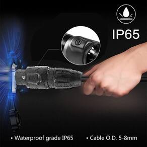 - Diâmetro externo do cabo suportado: 5-8 mm; Condutor: até 2,5 mm² (14 AWG)