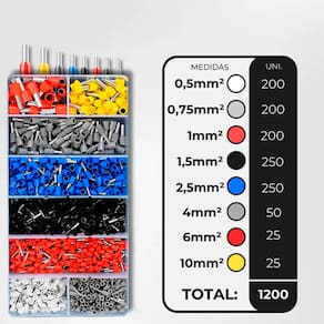 Este conjunto inclui terminais de ilhós de diferentes tamanhos e especificações, projetados para uma variedade de aplicações elétricas. Cada modelo é fornecido em quantidades específicas, com materiais e dimensões adequadas para atender a diferentes necessidades de conexão elétrica. Os terminais são ideais para uso em sistemas de fiação, oferecendo uma solução confiável e segura para conexões.