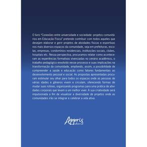 O livro “Conexões entre universidade e sociedade: projetos comunitários em Educação Física” pretende contribuir com todos aqueles que desejam elaborar e gerir projetos de atividades físicas e esportivas nos mais diversos espaços da comunidade, seja em prefeituras, escolas, empresas, condomínios residenciais, instituições sociais, clubes, hospitais etc. Nessa perspectiva, procuramos relatar como aconteceram as experiências formativas vivenciadas no cenário acadêmico, o trabalho pedagógico envolvido nesse processo e suas implicações na transformação da comunidade, ampliando, assim, a possibilidade de compreender a saúde e educação como fatores fundamentais ao desenvolvimento pessoal e social. As propostas apresentadas procuram estimular seu olhar para todos os espaços onde as pessoas de várias idades e gêneros vivem e circulam, oferecendo formas de mudar suas rotinas, organizando programas para uma prática de atividades corporais que levam a um melhor viver. A sua criatividade será impulsionada a fim de visualizar a diversidade de projetos onde as comunidades irão se integrar e celebrar a vida ativa.