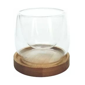 Conjunto 2 Copos Parede Dupla Borossilicato Com Base Bambu 80ml - Mimo Style
