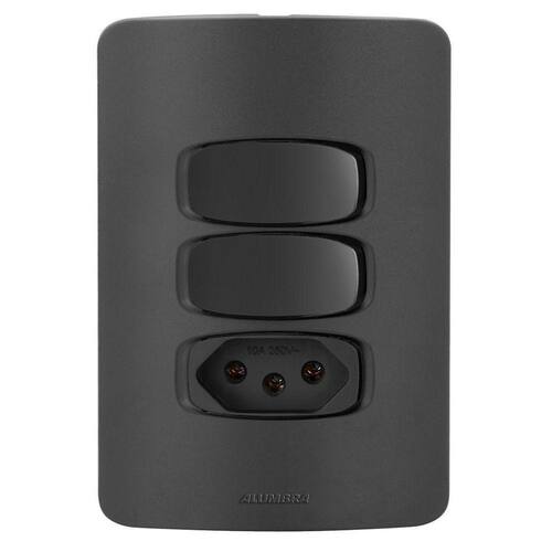 Alumbra Gracia Black Maxx - Interruptores e Tomadas Conjunto Completo Desmontado com: 2 Módulos de Interruptores Paralelos 1 Módulo de Tomada 20A 1 Placa para 3 módulos 4X2 1 Suporte 4X2 2 Parafusos Cor: Preto Para montar é apenas um click, apenas encaixar