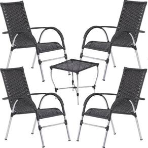 Conj Cadeira Area Externa Chuva Sol Resistente Trama - Preto