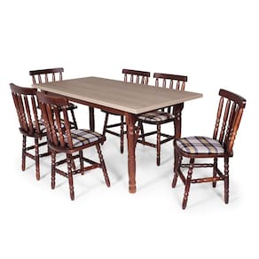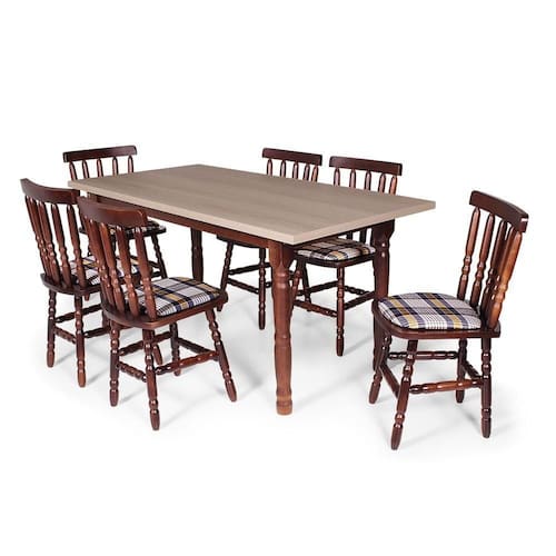 Conjunto Mesa de Jantar Retangular 160x80cm com 6 Cadeiras em Madeira Maciça Estofada Mônaco - Straub Web