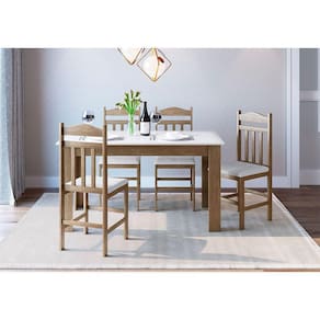 Conjunto Mesa de Jantar Fixa 4 Cadeiras Com Assento Estofado Móveis Canção