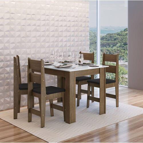 Conj Mesa Jantar 4 Cad Assento Estofado Ameixa Negra/Preto - Preto