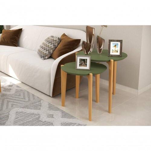 Itens Incluso: Mesa Lateral Caribe 0,60 Verde Floresta/Freijo, kit de montagem e manual de instrução
