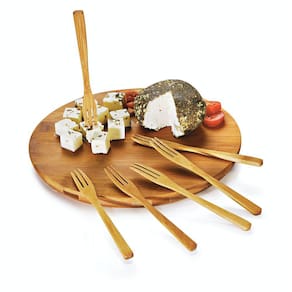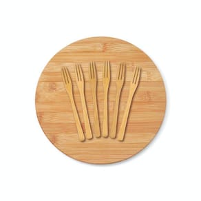 Conjunto para petiscos em Bambu. Acompanha tábua e seis garfinhos para queijo. Tábua confeccionada com tripla camada invertida, para dar maior durabilidade e não deformar com o passar do tempo. Dimensões da tábua: 21,3x1,2cm Imagens Ilustrativas PD-15783 Produtos confeccionados em Bambu: Utilizamos o Bambu, por ser uma matéria prima ecológica, autossustentável e com alta resistência. Além de versátil, o Bambu é 30% mais leve que as madeiras de lei. Sua utilização não agride o meio ambiente, pois, quando ceifado rebrota em pouco tempo.