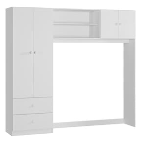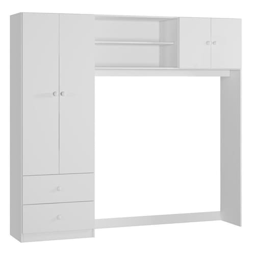 Conjugado Ternura Peternella, espaçoso, funcional e compacto sendo excelente para pequenos ambientes, pois permite que o berço seja encaixado abaixo dele. Produzido em MDP bio-sustentável de 15 mm, com pintura UV feita diretamente na madeira tratada, proporcionando assim um acabamento melhor ao móvel, possui 02 nichos organizadores, 04 portas com dobradiças metálicas e 02 gavetas com corrediças metálicas. É o produto ideal para você que quer aliar qualidade, modernidade e aconchego a decoração do quartinho do (a) seu (a) filho (a). O espaço para encaixe do berço abaixo do roupeiro é de 134 cm de comprimento. Este móvel chegará em sua casa separado em 02 volumes.