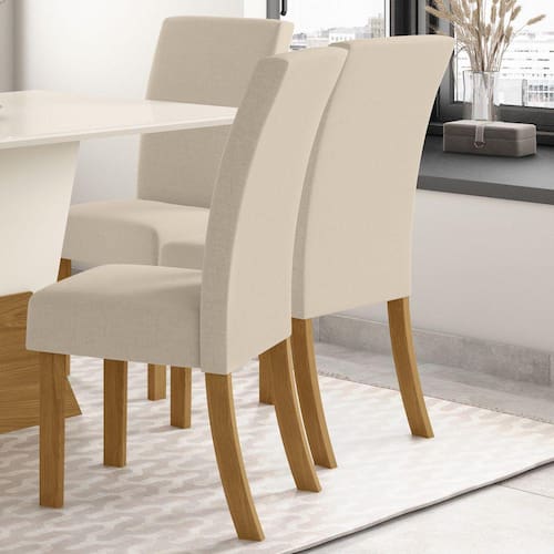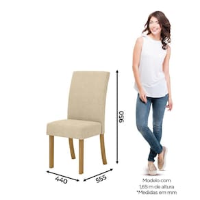 FICHA TÉCNICA: Escala de Brilho Cadeiras: Fosco Cadeiras Possui Rodízio: Não Peso Suportado por Cadeira: 120 Kg Estrutura Assento: MDP/MDF Revestimento Assento: Tecido Suede Enchimento Assento: Espuma D18 Almofada Assento: Não possui Tipo Assento: Fixo Estrutura Encosto: MDP/MDF Revestimento Encosto: Tecido Suede Enchimento Encosto: Espuma D18 Tipo Encosto: Fixo Material dos pés: MDF Medidas Montado: 95 x 44 x 55,5 Cm Peso Montado: 8,5 Kg