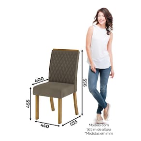 FICHA TÉCNICA: Escala de Brilho Cadeiras: Fosco Cadeiras Possui Rodízio: Não Peso Suportado por Cadeira: 120 Kg Estrutura Assento: MDP/MDF Altura Assento até o chão: 45,5 Cm Revestimento Assento: Tecido Suede Enchimento Assento: Espuma D18 Almofada Assento: Não possui Tipo Assento: Fixo Estrutura Encosto: MDP/MDF Revestimento Encosto: Tecido Suede Enchimento Encosto: Espuma D18 Tipo Encosto: Fixo Material dos pés: MDF Medidas Montado: 95,5 x 44 x 55,5 Cm Peso Montado: 7,5 Kg