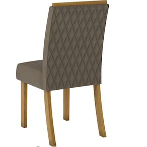 A cadeira Vega possui detalhes únicos que deixam a peça com ar de sofisticado e ao mesmo tempo transparece modernidade. Com pés em MDF de 25mm, sendo que a fixação é feita com peças de metal, que garantem maior segurança e durabilidade ao móvel. Possui moldura para pega no encosto, evitando assim o contato direto das mãos com o tecido. Possui medidas de 950 mm de altura, 440 mm de largura e profundidade de 575mm. O encosto é inclinado reto, estofado do assento com espuma de 30mm e densidade de 23, com tecido suede bordado, proporcionando maior conforto para aquele descanso merecido e para os momentos tão especial de reunir a família.