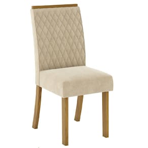 A cadeira Vega possui detalhes únicos que deixam a peça com ar de sofisticado e ao mesmo tempo transparece modernidade. Com pés em MDF de 25mm, sendo que a fixação é feita com peças de metal, que garantem maior segurança e durabilidade ao móvel. Possui moldura para pega no encosto, evitando assim o contato direto das mãos com o tecido. Possui medidas de 950 mm de altura, 440 mm de largura e profundidade de 575mm. O encosto é inclinado reto, estofado do assento com espuma de 30mm e densidade de 23, com tecido suede bordado, proporcionando maior conforto para aquele descanso merecido e para os momentos tão especial de reunir a família.