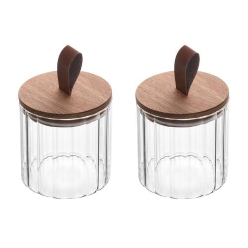 Conjunto 02 Potes de Vidro Canelado com Tampa Hermética de Acácia 560ml Wolff