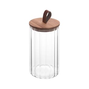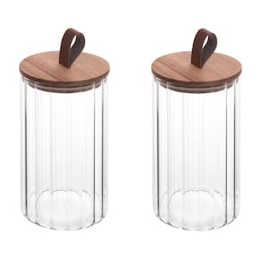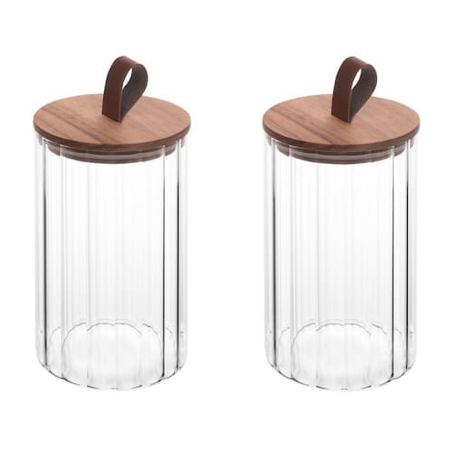 Conjunto 02 Potes de Vidro Canelado com Tampa Hermética de Acácia 880ml Wolff