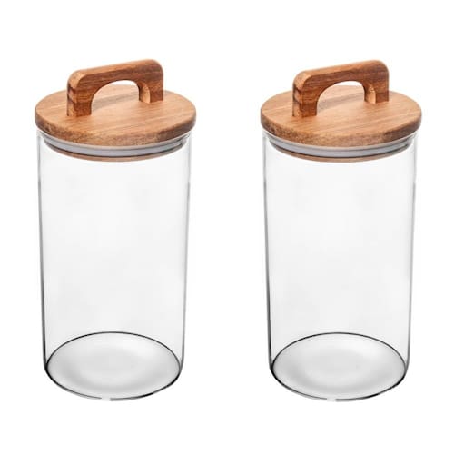 O Conjunto com 2 Potes de Vidro Wolff é perfeito para armazenar mantimentos com praticidade e sofisticação. Com capacidade de 1,25L cada, contam com tampa em madeira de acácia que agrega vedação eficiente e um toque natural à decoração. Ideais para compor bancadas e despensas com elegância. Funcionalidade e beleza caminhando juntas no seu dia a dia.