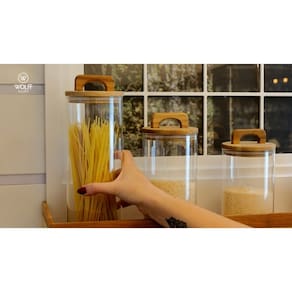 Conjunto 02 Potes de Vidro com Tampa Hermética de Acácia 1,7L Wolff - Especificações Técnicas