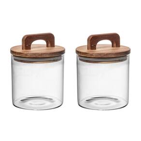 Conjunto 02 Potes de Vidro com Tampa Hermética de Acácia 700ml Wolff