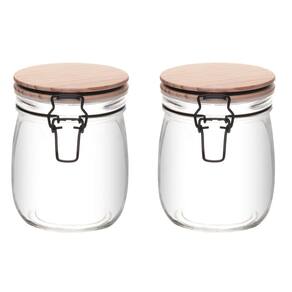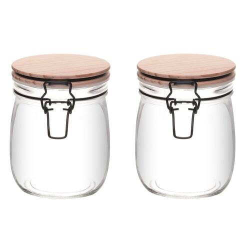 Conjunto 02 Potes de Vidro com Tampa Hermética de Bambu 800ml Wolff