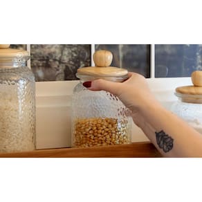 O Conjunto com 2 Potes de Vidro Martelado Wolff combina design sofisticado com funcionalidade para o dia a dia. Com capacidade de 1L cada, possuem tampa hermética em bambu que auxilia na conservação dos alimentos. O acabamento martelado traz charme e personalidade à cozinha. Ideais para manter tudo organizado com beleza e praticidade.