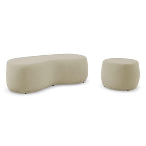 Conjunto 02 Puffs Decorativos Living Aisha Orgânico Veludo Bege - Desk Design