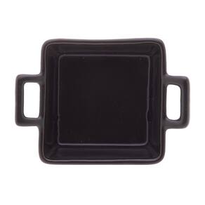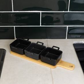 Conjunto 03 Petisqueiras Quadradas de Porcelana Preta com Bandeja de Bambu Wolff