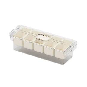 A estrutura firme e o fechamento eficiente tornam esse conjunto uma solução versátil também para organização de itens não alimentares, como materiais de artesanato ou escritório. ===================================== Contém: 05 Potes 01 Caixa com Tampa 05 Colheres 01 Pegador