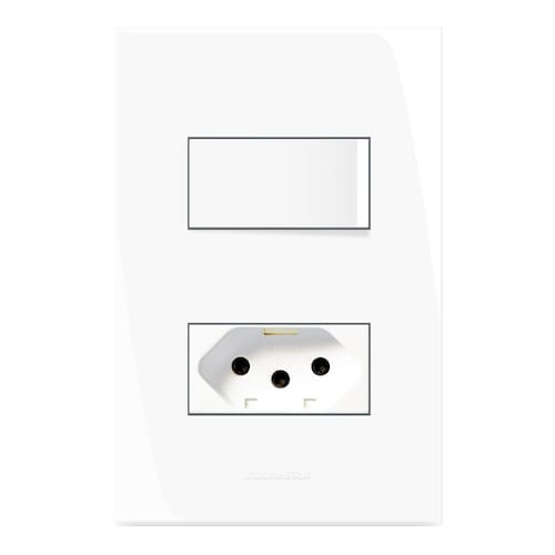 Conjunto 1 Interruptor Simples + 1 Tomada 2P+T 20A 250V~ com Placa 4x2 Inova Pro Alumbra Branco
