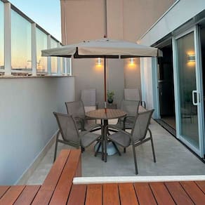 Foi pensando em você que desenvolvemos o Jogo de 1 Mesa Tampo em Alumínio Ripado + 4 cadeiras em Tela Sling + 2 Espreguiçadeiras em Tela Sling + 1 Mesinha de centro + 1 Ombrelone - Móveis Com Valor, que vem para trazer comodidade e praticidade, perfeito para qualquer ambiente, contando com um design despojado e suave. Sua matéria-prima de excelente qualidade lhe garante toda durabilidade e resistência que você merece.